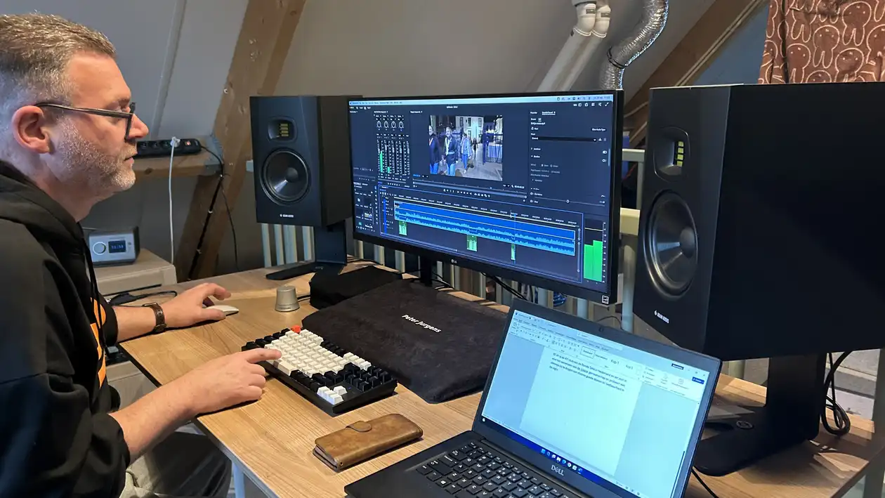 Vrijdag 20 februari druk bezig met de audio nabewerking van de films die we tijdens onze voorstellingen op 9 en 10 maart in de Klinker gaan vertonen. Dinsdagmiddag 10 maart is er ook een matineevoorstelling. De teksten door Arnoud Bodde ingesproken en deze worden nu op de juiste plaatsen gemonteerd.